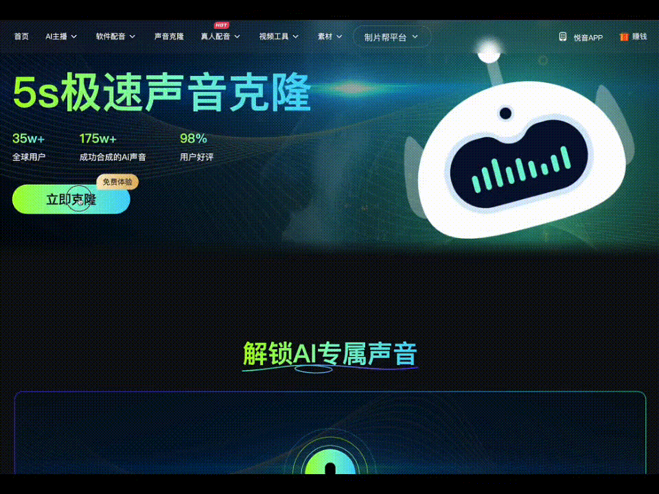 克隆完成,即可使用克隆好的音色去配音悦音克隆产品优势